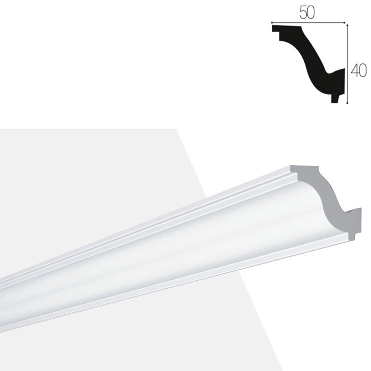 Sanca em poliestireno extrudado de alta densidade. Cor branca, sem CFC nem HCFC, não tóxico.